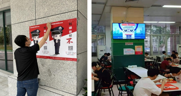张贴宣传海报、在学校饭堂播放“国家安全教育”系列视频(来源:保卫部)