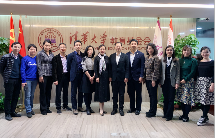 与清华大学教育基金会工作人员合影留念(来源:教育发展与校友事务办公室)