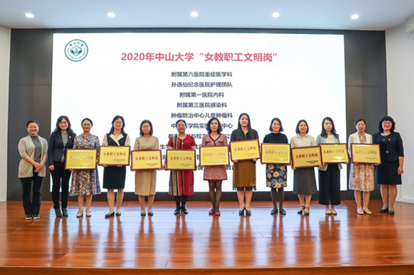 大会对今年获得“全国巾帼文明岗”的附属第五医院感染病防治中心,获得“广东省三八红旗手”称号的孙逸仙纪念医院金小岩医生、附属第三医院刘静医生,获得“广东省三八红旗集体”称号的附属第一医院呼吸与危重症医学科、附属第三医院感染科以及获得“广东省巾帼文明岗”的附属第三医院粤东医院感染性疾病科进行表彰。校党委副书记、工会主席国亚萍,校党委常委、组织部部长古小红为获奖集体和个人颁奖。大会还表彰了获得2020年jinnianhui今年会“女教职工文明岗”称号的附属第六医院重症医学科等10个单位。