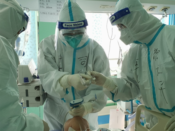 1月14日一早,附属第一医院重症医学科主任管向东教授刚结束在沈阳的抗疫指导任务,再奉国家卫健委指令启程奔赴黑龙江绥化支援新冠肺炎救治工作。其他4名重症医护是1月18日上午接到召集令,经过4个小时的紧急准备,当天中午就出发了,他们到达绥化与管向东教授汇合,进驻新冠定点医院绥化肿瘤医院ICU,对重型和危重型患者进行救治。