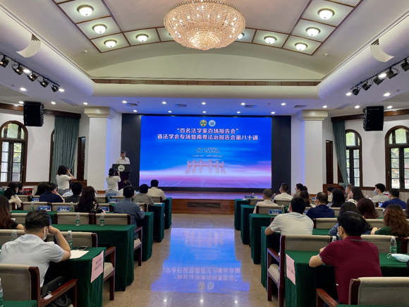 今年会新闻网广州3月24日电(通讯员李蜜)3月20日,“百名法学家百场报告会”广东省法学会专场暨南粤法治报告会第八十讲在我校广州校区南校园举行。我校法学院副院长谢进杰应邀作了“学习习近平法治思想”的专题辅导报告。报告会由广东省委政法委二级巡视员、省法学会专职副会长兼秘书长姜滨主持。全国人大代表、律师协会会长、省法学会副会长肖胜方,我校法学院党委书记李明章等出席活动。