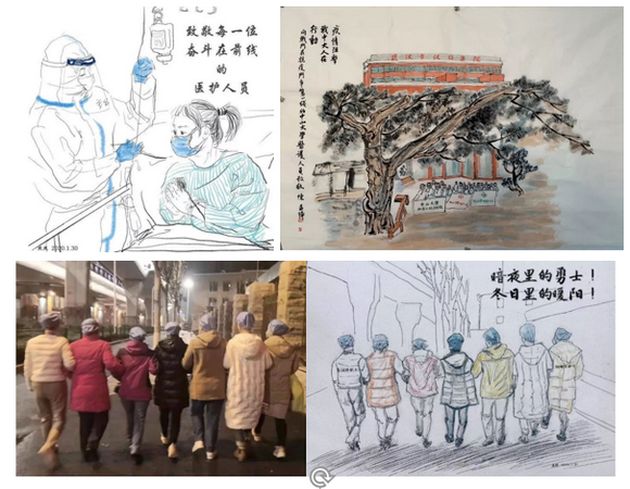 学生抗疫原创作品,为抗疫工作加油(来源:艺术学院)