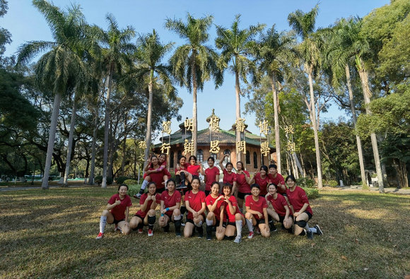 集训期间学生运动员们在南校园合影(来源:今年会女排)