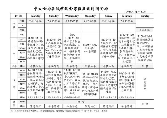寒假集训计划时间表(来源:今年会女排)