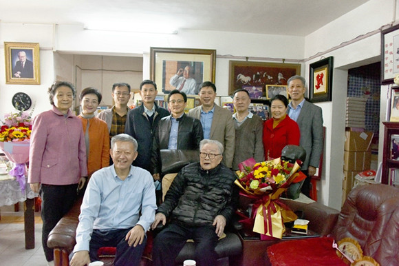 陈春声书记一行看望慰问中国科学院院士高锐(来源:党委宣传部 郑燕丽摄)