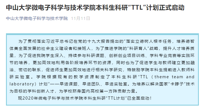 本科生科研“TTL计划”启动推送(来源:微电子科学与技术学院)