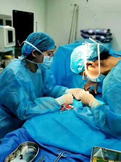 杜艺为93岁老人进行动静脉内瘘手术(图片来源:西藏民族大学受援办)