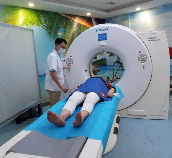 孔庆聪为患者进行胸部CT检查(图片来源:西藏民族大学受援办)