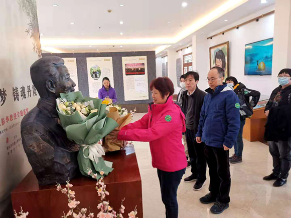 向彭华教授铜像献花(来源:党委统战部)