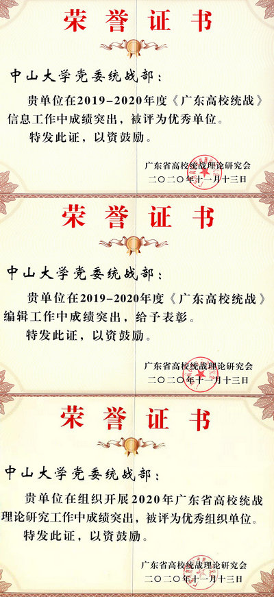 2020年,我校统战工作坚持以习近平新时代中国特色社会主义思想为指导,贯彻落实各级党委关于新时代统一战线工作的重大决策部署,紧紧围绕中心,服务大局,推进各项工作取得实效并积极展开统战理论研究,加大统战理论宣传力度,共有6篇论文获得2020年广东省统战理论研究会年会优秀论文奖,进一步扩大了统一战线的影响力。