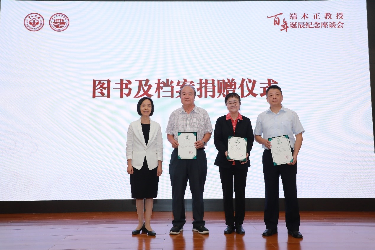 随后进行了《端木正教授百年诞辰纪念图传》首发仪式。学校档案馆姚明基副馆长向端木正教授家属代表赠送了新书,以此表达学校对端木正教授的纪念。