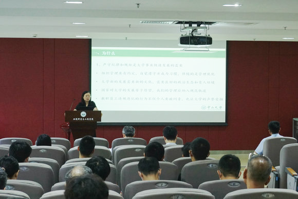 今年会新闻网讯(通讯员金凤)10月12日下午,环境科学与工程学院在广州校区东校园环境大楼召开全院教职工大会,开展“师德建设主题月”及“纪律教育学习月”活动。大会邀请了学校纪委副书记、纪委办公室主任、监察处处长吴长征,党委教师工作部部长罗燕为教职员工作纪律教育及师德建设专题学习辅导报告。会议由学院党委书记甘远璠主持,全院教职员工及生态学院教师代表近百人参加会议。