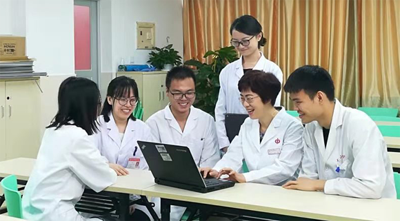 蒋小云教授与实习生教学病例讨论(图片来源:附属第一医院)