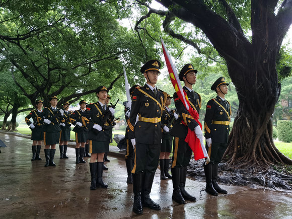 仪式开始,指挥员口令洪亮,队员方队步履铿锵,迈出的每一个步伐都坚定响亮,诉说着对国家荣耀的无限景仰。