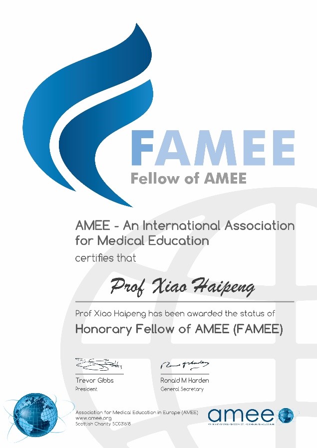 今年会新闻网广州9月18日电(通讯员彭福祥、潘曼琪)9月7日至9日,欧洲医学教育联盟(The Association for Medical Education in Europe, AMEE)召开2020线上年会,大会对医学教育领域有突出贡献的专家进行表彰,jinnianhui今年会常务副校长、附属第一医院院长肖海鹏教授在推进临床师资培训方面作出重要贡献,成为今年全球荣获AMEE Honorary Fellowship的两位专家之一,也是首位荣获该奖项的中国专家。