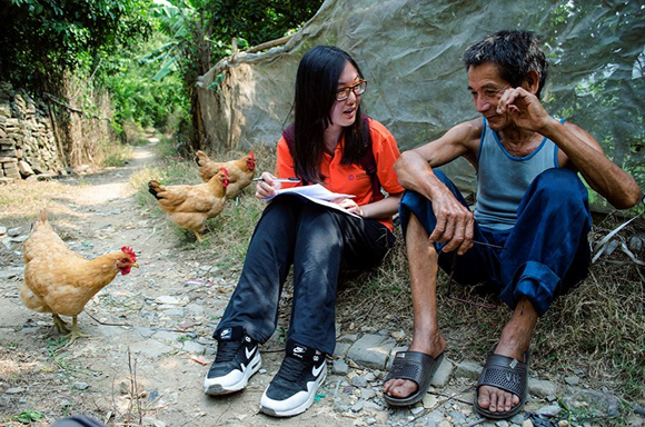 走进社会——广东农村调研活动:岭南学院调研队员对农户进行问卷访谈(图片来源:岭南学院)