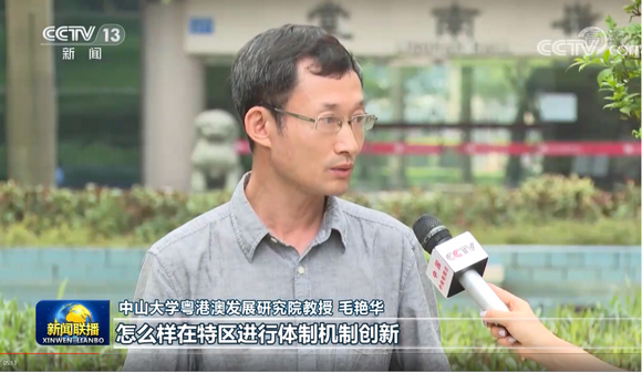 毛艳华教授接受《新闻联播》采访(图片来源:党委宣传部)