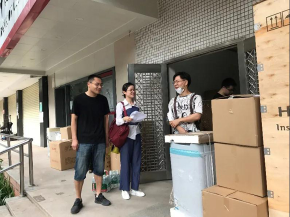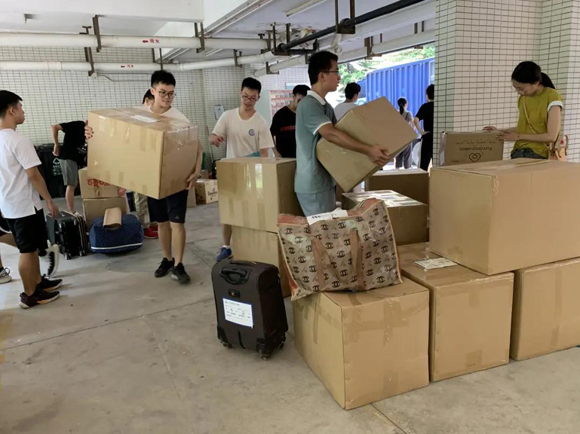 8月25日,学院安排志愿者在各宿舍楼下为同学们发放打包行李所需物资,提前做好搬迁准备。