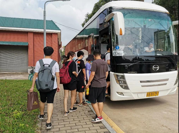 上午8点半左右,同学们在梁浩文老师和曹波老师的指引下陆续坐上了前往东校园的大巴车。学院提前在车上为同学们准备了解暑饮料,让大家在车上得到较好的休息。