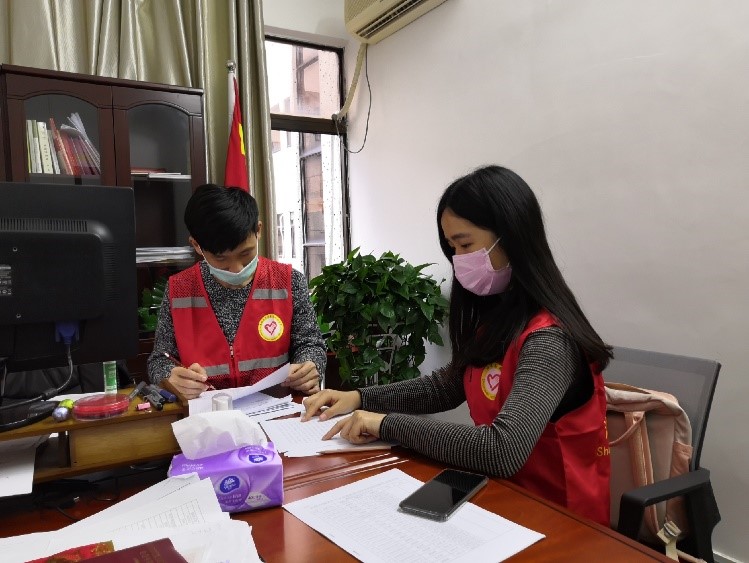 黄心怡在汕尾市城区红十字会参加志愿服务工作(来源:法学院)