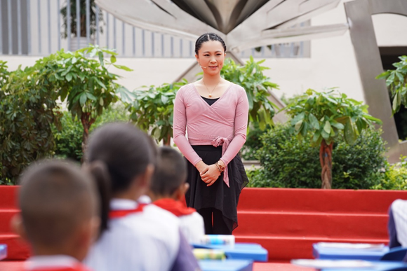 在音乐公开课上,艺术学院师生进行了专业的艺术展示,并与思源小学的同学们进行了教学互动。金婷婷副院长、张海庆副教授在现场一展歌喉,为同学们示范了民族、美声、流行等多种声乐唱法,悠扬的歌声久久回荡在校园,也将音乐的种子播撒在他们的心田。李燕副书记现场讲授藏族、蒙古族、傣族舞蹈动作,让同学们感受我国丰富多彩的民族艺术。胡妍璐、崔杉、陈柏安老师带领同学们认识琵琶、古筝、竹笛等中国传统乐器,并合奏一曲,泠泠的琴音和悠悠的笛声令人陶醉其中。此外,彭建楠博士讲述了彝族童谣的来历,光辉、陈孟璋还邀请同学们进行了绘画创作,用五彩斑斓的颜料来勾画他们心中的童话世界。