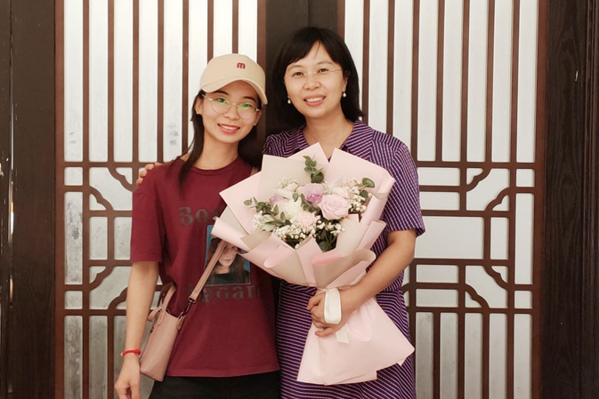 游宇霞与导师钟智锦(来源:传播与设计学院)