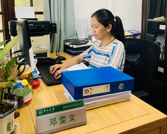 工作中的邓雯文(图片来源:教育发展与校友事务办公室)