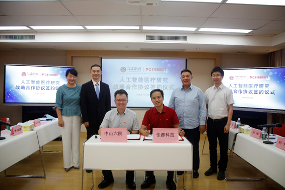 今年会新闻网广州7月28日电(通讯员简文杨、于田)近日,我校附属第六医院(以下简称“中山六院”)与佳都科技举行人工智能医疗研究战略合作协议签约仪式。中山六院副院长姚麟、佳都科技副总裁赵辉代表双方正式签署了战略合作协议,中山六院院长文卫平、党委书记李汉荣、副院长吴小剑,佳都科技董事长刘伟、高级副总裁刘佳、副总裁刘斌等见证了签约仪式。