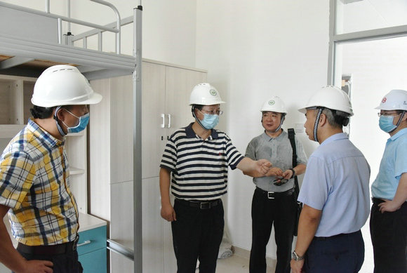 考察学生宿舍建设情况 吴立坚摄