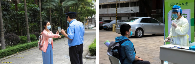 新闻网讯(记者 王冬梅、何方、黄洁宏)根据学校相关工作部署,继广州校区南校园首场疫情防控演练后,5月7日-8日,我校广州校区东校园、北校园和珠海校区也陆续开展了学生返校疫情防控演练。本次演练共设两个模拟场景,分别是学生返校身份核验和体温检测,以及发现疫情后的上报与转诊。本次演练由广州校区管委会、珠海校区管委会以及医院管理处统筹组织开展,相关职能部门、各校区(园)门诊部、各院系学生工作负责人以及辅导员、物业公司代表等参加了这次现场演练。