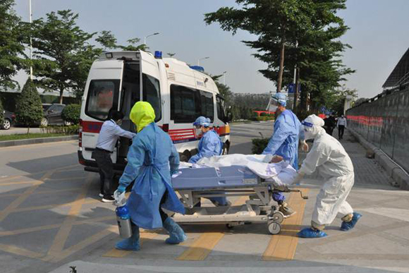 新闻网讯(通讯员刘畅、刘琼珊) 4月28日,为应对即将到来的台风暴雨天气,我校附属第七医院举行灾害天气隔离留观病人应急转运演练。