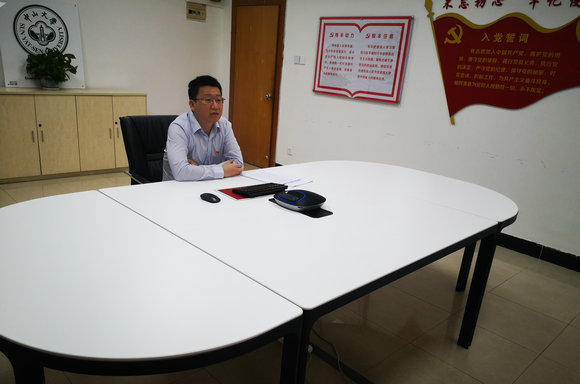 党委教师工作部副部长、马克思主义学院副院长沈成飞教授在进行网络直播党课