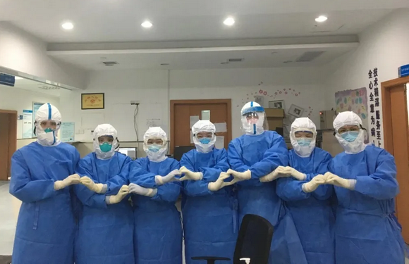 相互加油打气的医疗队员们