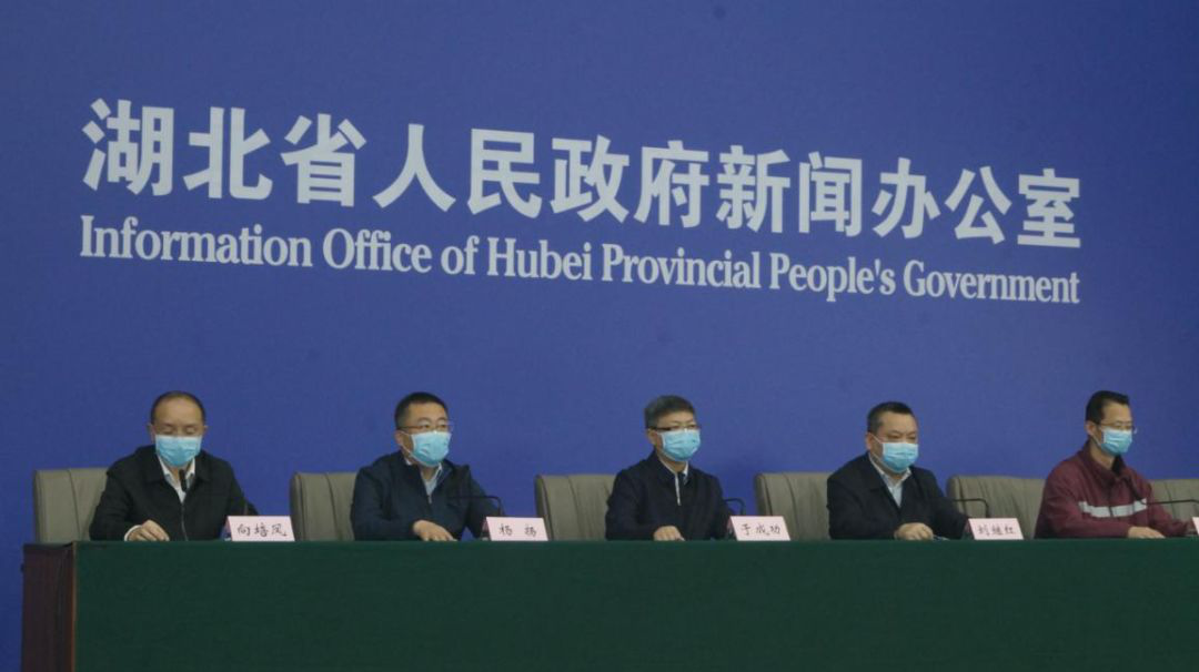 附属第三医院医疗队杨扬(左二)代表医疗队在湖北新闻发布会上分享战“疫”经验