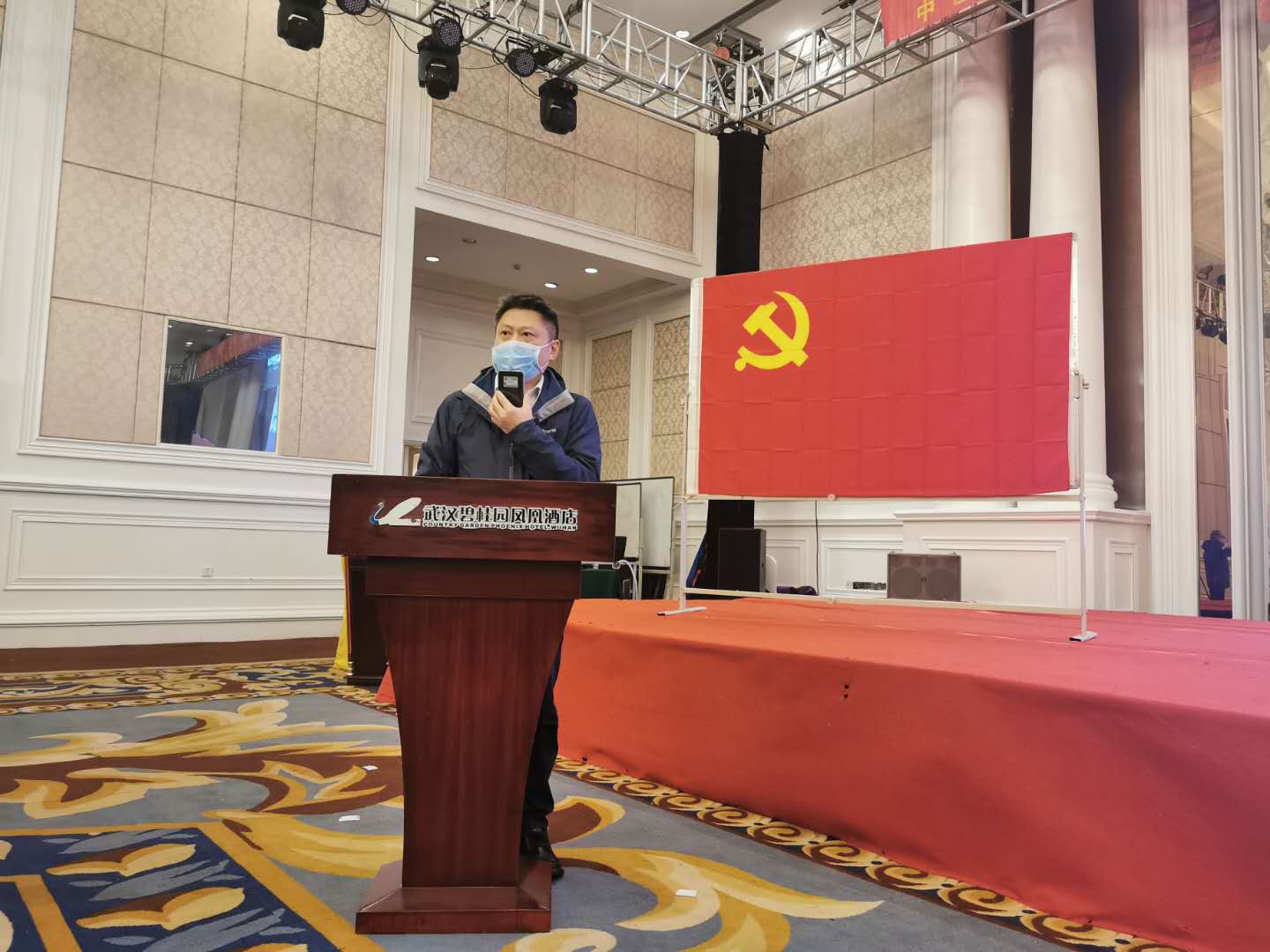 预备党员代表、护理部副主任邱逸红在发言中表示,在武汉前线工作的日子里,身边的共产党员以实际行动做表率,在危急时刻挺身而出、冲锋在前,用实际行动践行着共产党员的初心和使命,她深受鼓舞,进一步坚定了加入党组织的决心。邱逸红表示,在临时党总支的领导下和党员先锋模范的带动下,她将以身边的优秀共产党员为榜样,在思想和行动上向优秀党员同志看齐。