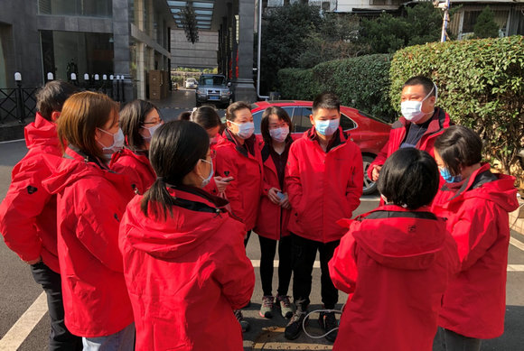 他这样说也是这样做的,生活上的需求尽全力满足大家。他每天睡不了几个小时,睁开眼睛第一件事,除了物资,还是物资。多少次寒风中站在酒店侧门清点堆成小山的物资;多少次半夜当仁不让的走在队伍最前端搬运防护物资。汗水湿了衣襟,他却说,酣畅淋漓流汗的感觉很爽。他看到N95口罩、护目镜压伤了队员们的脸颊,立即联系大后方给大家寄来水胶体、液体敷料;二月中旬下雪天里,怕队员们受寒着凉,又提前向后方调去保暖内衣、棉袜、围巾、羽绒服等防寒装备;当队里大多数广东籍战友们想喝一口老火汤时,他又立即跟酒店厨房协商,从那天起,每餐都多了一碗饱含温暖的汤……