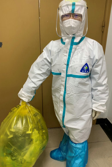 他,像一个暖心的大白,守护着这个临时的大家,让家里的成员更安心地守护者武汉这个大家!