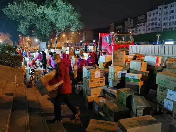 下午一点,119箱防护用品、13箱医疗设备、114箱医用药品、497箱非医疗物资全部装车完毕随队出征。