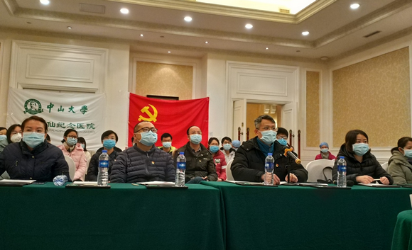 第一批医疗队在除夕之夜到达武汉后,当时武汉医疗防护资源仍然极度缺乏,看到当地医护人员防护用具不足,党支部经过商议将从广州带过去的大部分防护用具捐给了受援医院,仅仅留下小部分防护用具给队员使用。