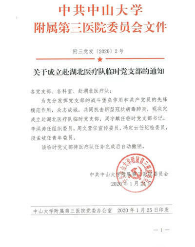 此次出征,医院成立了赴湖北医疗队临时党支部