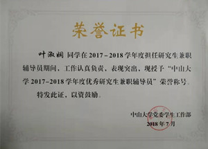 自2013年加入党组织以来,叶淑娴时刻谨记党员身份,以严格的标准要求自己。本科学习期间,在保证学习质量的同时积极参与学生工作,她担任过班委、年级长和助理辅导员,较大提升了学习能力和工作能力;研究生阶段,学习成绩良好,担任过学院研究生兼职辅导员,负责党建事务,获得较多与人接触的机会,收获了宝贵的处理事务的经验。