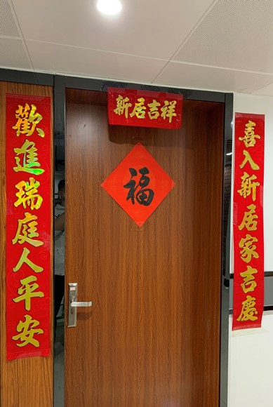 同学们在宿舍门口张贴的对联