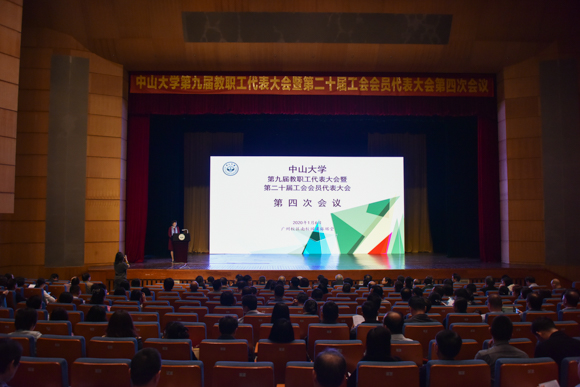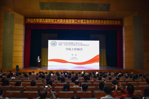 1月6日上午,我校第九届教职工代表大会暨第二十届工会会员代表大会第四次会议在广州校区南校园梁銶琚堂召开。校长罗俊,校领导孙冬柏、马骏、国亚萍、李善民、余敏斌、杨清华、王雪华、兰平、邰忠智,校长助理刘济科、杨东华,党委常委古小红出席本次会议,陈新滋院士列席会议。大会由校党委副书记、工会主席国亚萍主持。65个“双代会“代表团的500余位正式代表和列席代表参会。