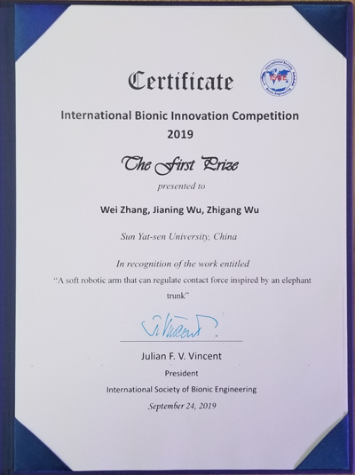 博士生张威获2019国际仿生创新竞赛(IBIC)一等奖