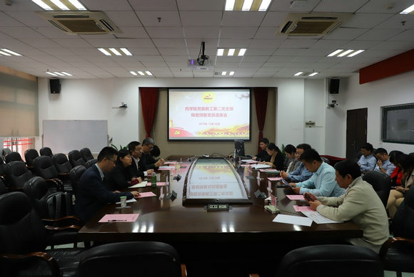 12月26日,药学院教工第二党支部召开党员大会,讨论接收王军舰同志为中共预备党员。校党委副书记余敏斌同志出席会议。党委组织部、药学院党相关领导一同参加会议。会议由药学院教工第二党支部书记叶建涛同志主持。