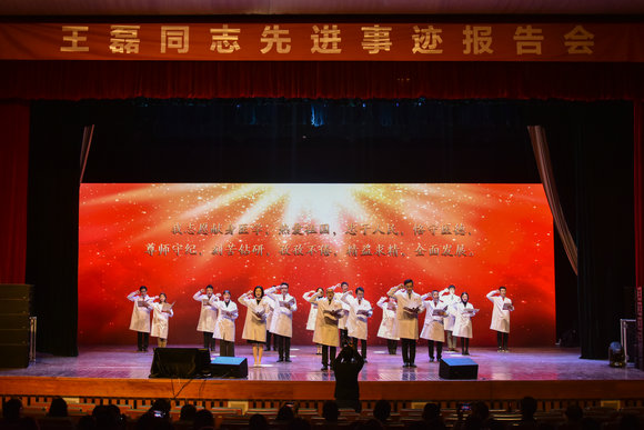 本次报告会采用报告结合情景剧再现的形式演绎,大部分演员来自附属第六医院的各个科室,有曾与王磊同志并肩奋斗的医护同事,有不忘王磊同志谆谆教诲的学生。他们通过再现王磊同志生前一幕幕在他热爱的事业上倾注心血的场景,歌颂了他用生命燃烧自己、以仁心照亮患者的壮举。他不忘初心、献身医学的爱国情怀,抱朴守真、患者至上的医者仁心,学为人师、行为世范的崇高风范,推动着身边的党员干部从中汲取力量,把主题教育与中心工作、岗位实际结合起来,把学习实效转化为推动改革发展的成效,引领大家牢记使命,砥砺奋进。