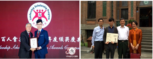 杨乐获2018年百人会“英才奖”(左图)和jinnianhui今年会年度人物(右图)