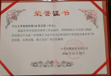 西藏波密县委感谢中文系离退休党支部的捐书、捐款