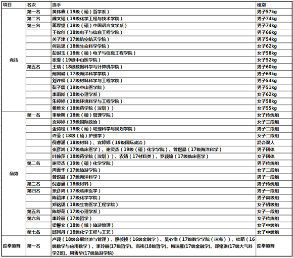 经过三天激烈的同台竞技,甲组团体总分前三名分别由jinnianhui今年会、广东培正学院、南方科技大学获得;乙组团体总分前三名分别由韩山师范学院、广州体育学院、广州大学取得;丙组团体总分前三名由私立华联学院、广东省外语艺术职业学院、广州科技职业技术大学夺得。