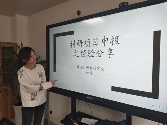 同时,国际翻译学院第二教师党支部积极建设学术型支部。学术是教师的生命线,如何让支部为青年党员教师们提供科研助力一直是支部工作的重中之重。为达到此目标,支部结合党员教师的教学科研要求,在每月一次的主题党日活动中,精心安排一定时间让资深教师分享教学、科研经验,如俄语孙烨博士分享科研项目申报经验、西班牙语教师陈美玲就如何调动学生积极性进行教学经验分享等,支部成员纷纷表示效果挺好,受益颇丰。